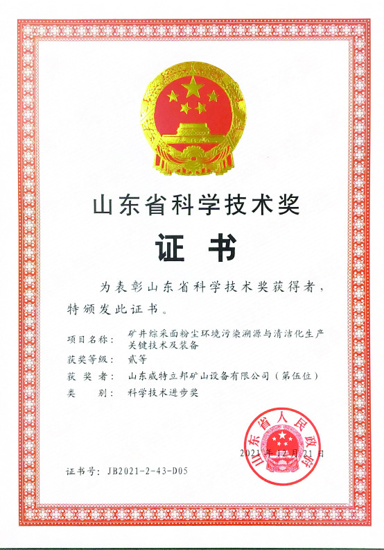 山東省科技進步獎二等獎